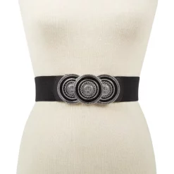 Promo 🔔 INC International Concepts Round-Buckle Stretch Belt, Created For Macy’s Black/silver ✔️