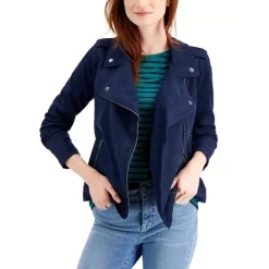 Discount 🛒 Style & Co Petite Faux-Suede Moto Jacket, Created For Macy’s Deep Black 👏