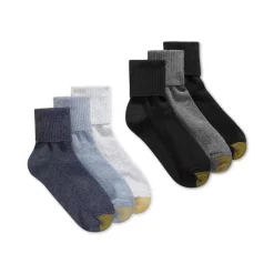 Flash Sale 🥰 Gold Toe 👩 Women’s Turn Cuff 6 Pk 🧦 Socks, Available In Extended Sizes Black 🔥