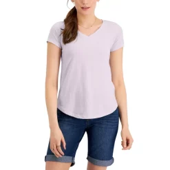 Discount 😀 Style & Co Petite Burnout V-Neck T-Shirt, Created For Macy’s Sangria Wine ⭐
