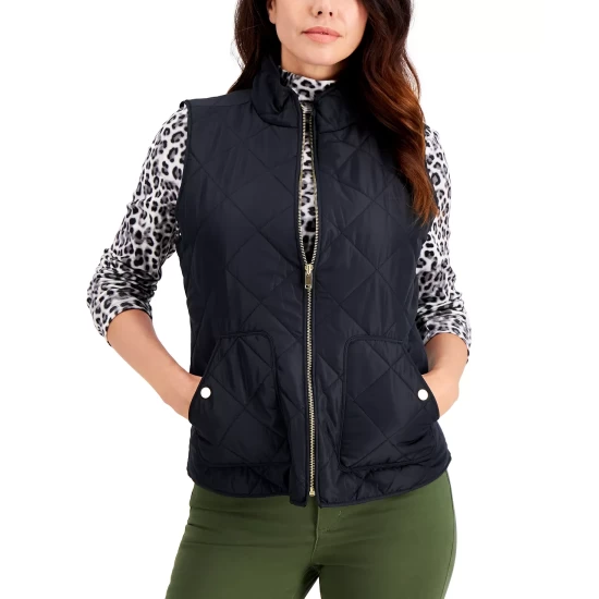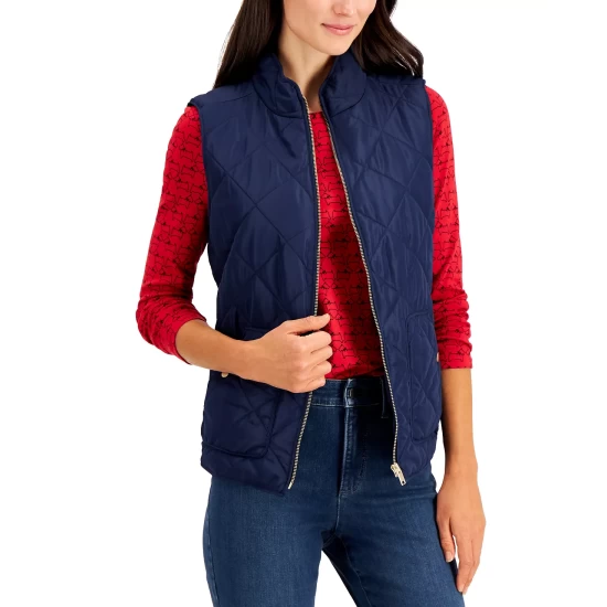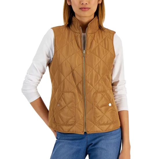 Stay cozy indoors or out with this Charter Club vest, a comfy layer polished with diamond quilting.