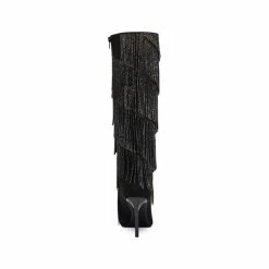 Long fringe spirals down the shaft of INC International Concepts®’s Shyn boots adding striking texture to a chic stiletto lift.