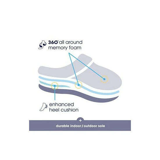 - 360ยฐ Surround Comfortโข, memory foam wraps the entire foot โ including the tops, sides, and soles โ for the ultimate custom fit.