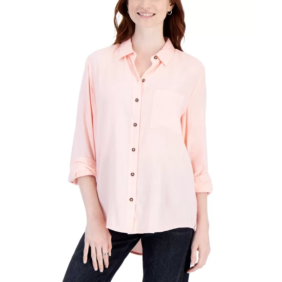 - Relaxed fit; sits just below the waist