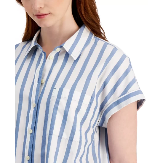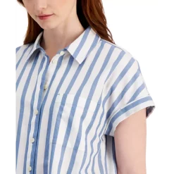 - Zipper and button closure at front; belt loops
