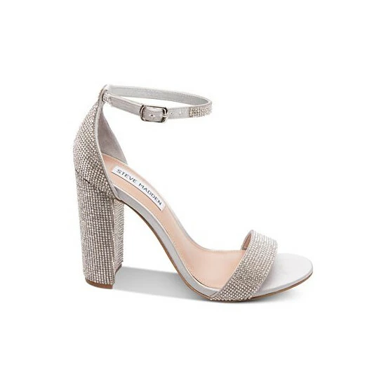 Sparkling rhinestones put a glamorous finish on dressy looks in these gorgeous Carrson ankle-strap sandals from Steve Madden.