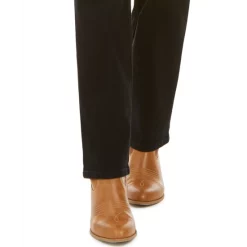 - Zipper and button closure at front fly; belt loops