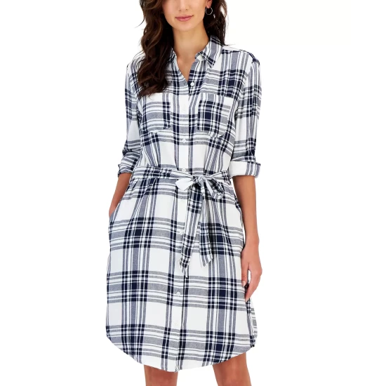 The shirtdress gets a casual makeover from Style & Co. This plaid petite button-front option also features plenty of pockets for extra storage.