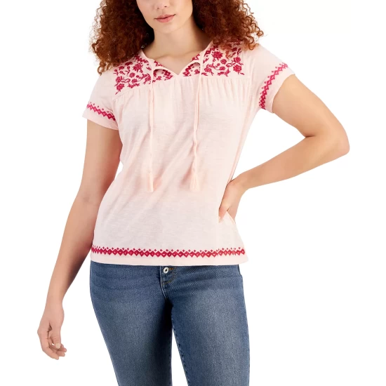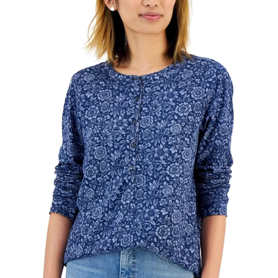 All cotton freshness from Style & Co, this petite top is featured in lovely florals for a chic finish.