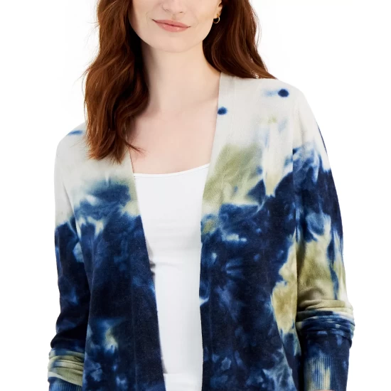 An essential layer year round: this petite cardigan from Style & Co adds interest with a vibrant print and an effortless design that goes on in a snap.