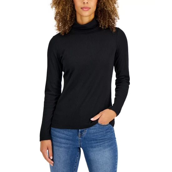 Create a sleek silhouette with this fitted and ribbed petite turtleneck from Style & Co, a perfect option for everyday wear.