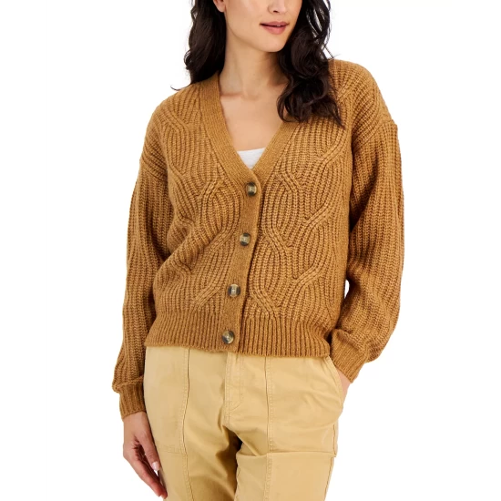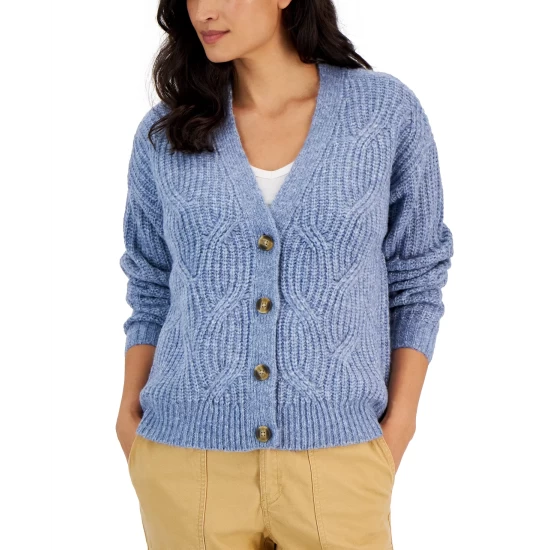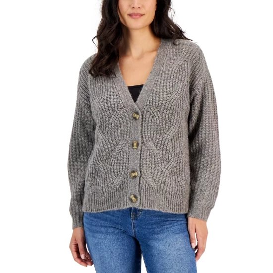 A sweater that’s ideal for cozy layered looks, this Style & Co cardigan features pretty cable-pattern details.