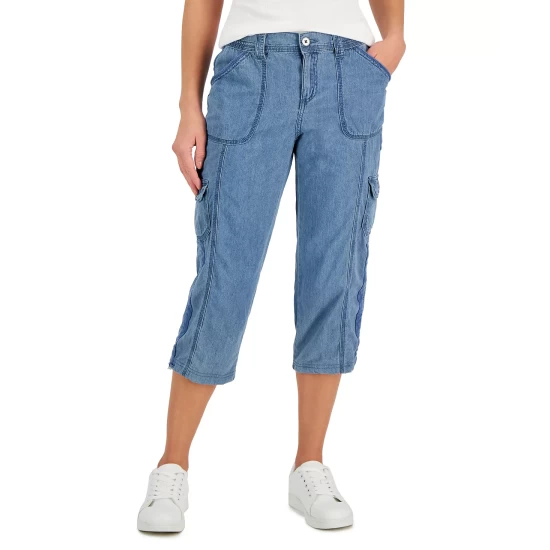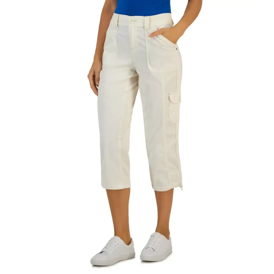 Style & Co lends added form and function to these cargo-inspired capri pants with plenty of pockets and bungee cords at each hem.