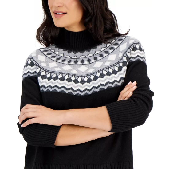 Fairisle details bring cozy style to this pullover mock-neck sweater from Style & Co.