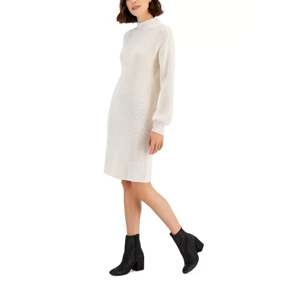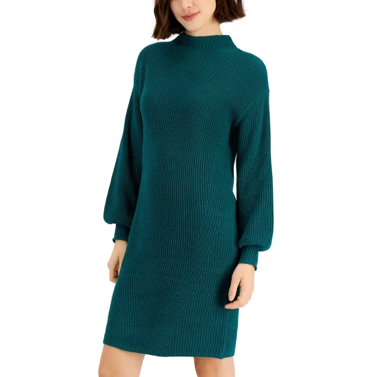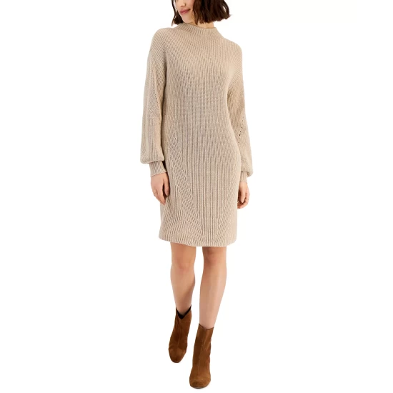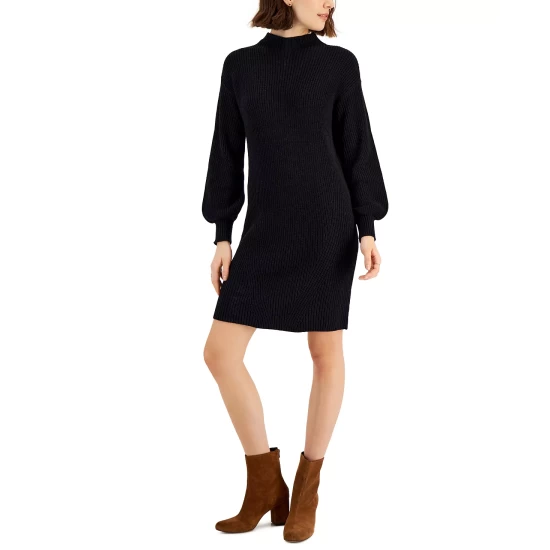 A cozy mock turtleneck tops off this soft long-sleeve sweater dress from Style & Co.