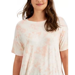 A dreamy print on subtly textured knit updates this look from Style & Co, a drapey T-shirt with an easy feel.