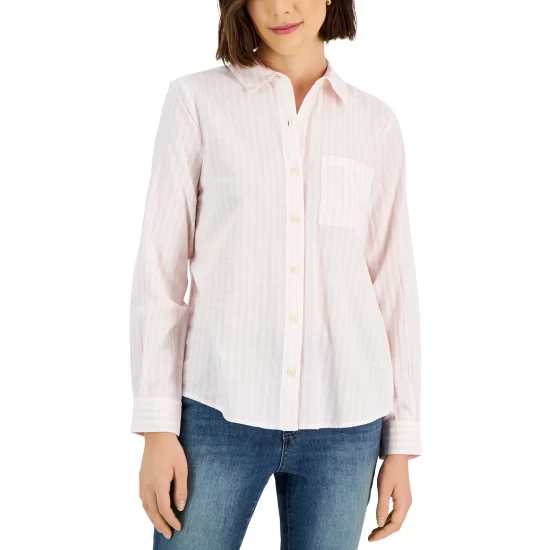 Colorblocking at the yoke, cuffs and hem highlight timeless stripes, putting a fresh spin on this Style & Co sweater.