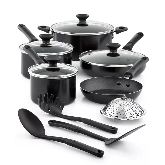 Enjoy non-stick performance and a variety of the essentials you turn to most with this Tools of the Trade cookware set. The 13 pieces include saucepans, utensils and more.